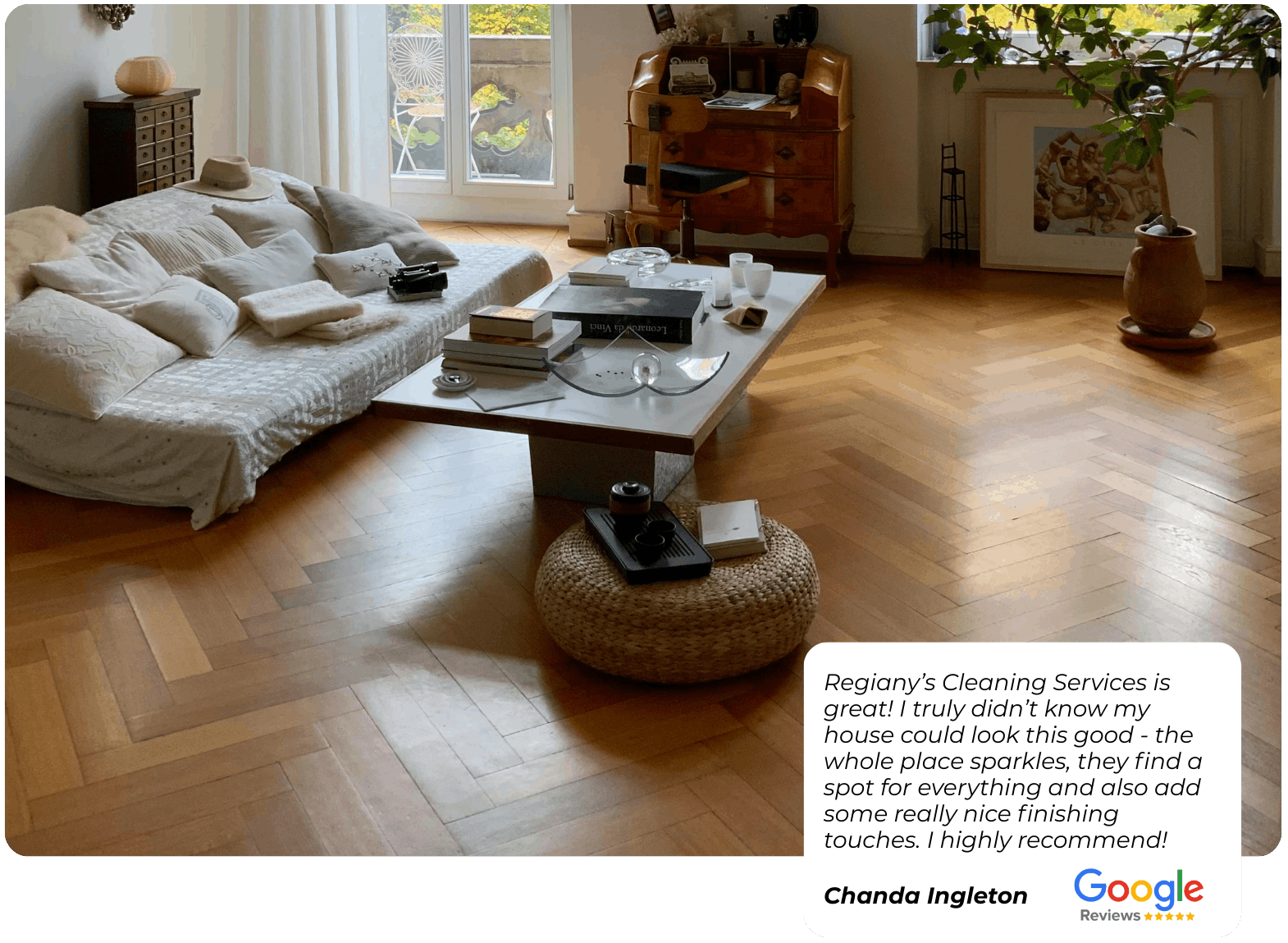 Regiany’s Cleaning Services provides reliable residential and commercial cleaning services across Massachusetts and New Hampshire. We focus on high-quality cleaning, attention to detail, and consistent results for every space.